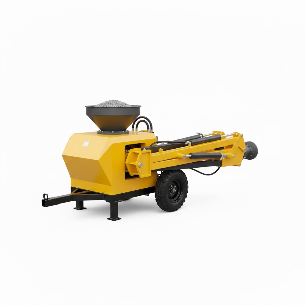 Pompe à béton avec tuyau conçue pour le transfert précis du béton sur les chantiers de construction et de rénovation. Elle permet d’atteindre facilement des zones éloignées ou difficiles d’accès tout en assurant un débit régulier.